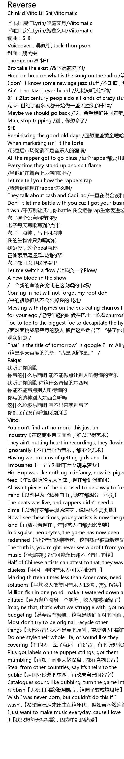 | [00:42.242] | Let me tell you how the rappers rap wǒ gào sù nǐ xiàn zài rapper zěn me chàng |