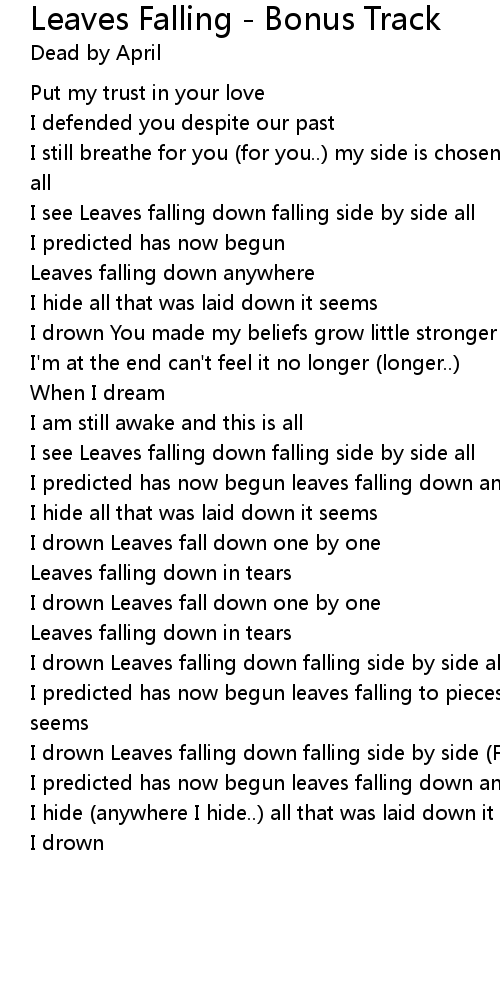 I drown Leaves falling down falling side by side (Falling down..) all |
