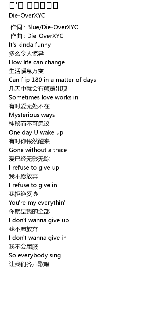 | [00:01.000] | zuo qu : DieOverXYC |