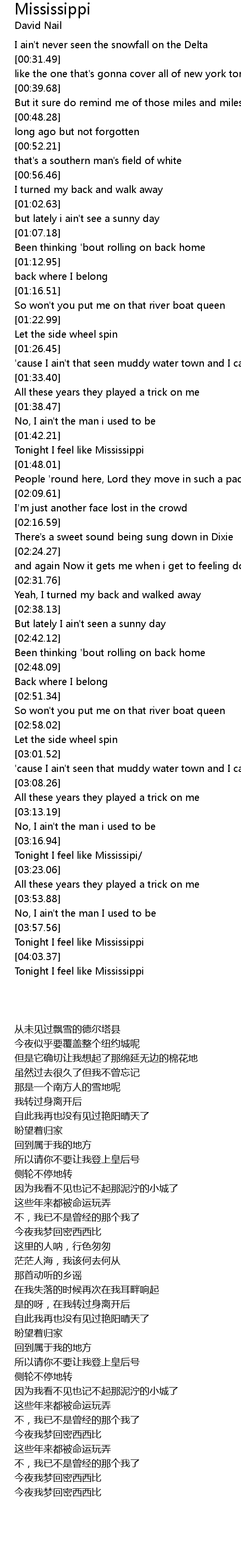 Tonight I feel like Mississipi/ |