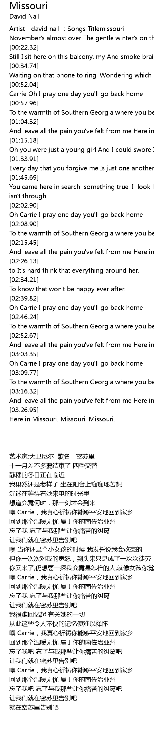 | [03:20.02] | And leave all the pain you've felt from me Here in Missouri. |