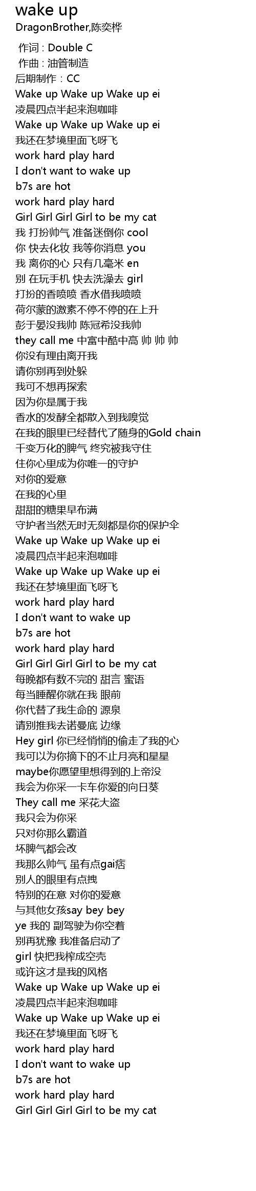 | [01:29.683] | Wake up Wake up Wake up ei |