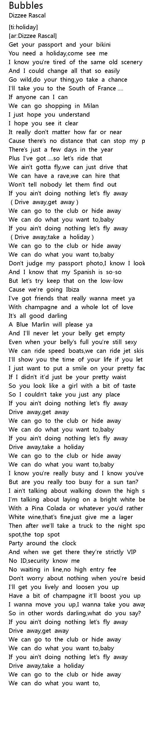 | [00:12.59] | Get your passport and your bikini |