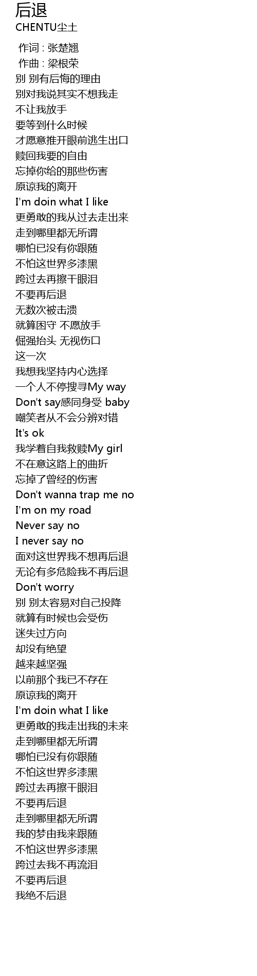 | [01:51.208] | miàn duì zhè shì jiè wǒ bù xiǎng zài hòu tuì |