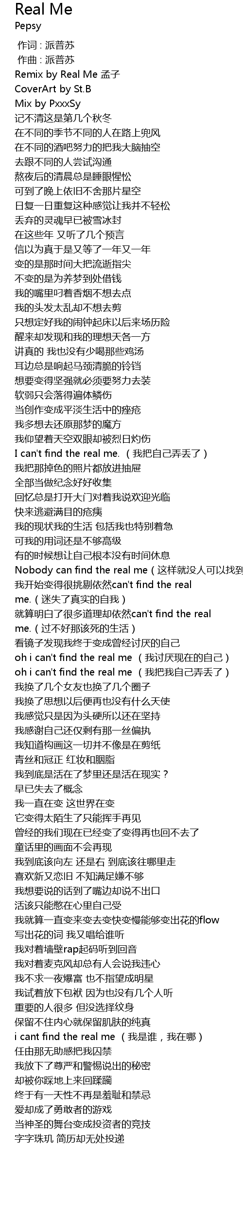 | [02:34.448] | i cant find the real me (我是谁,我在哪) |