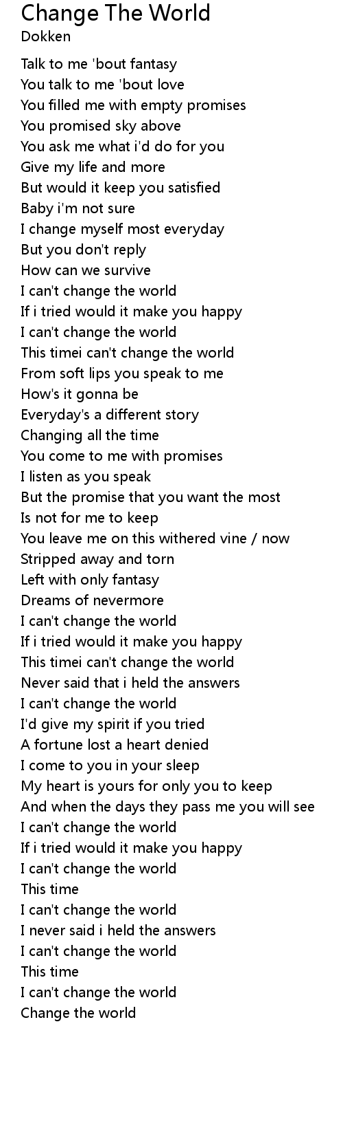 | This timei can' t change the world | |