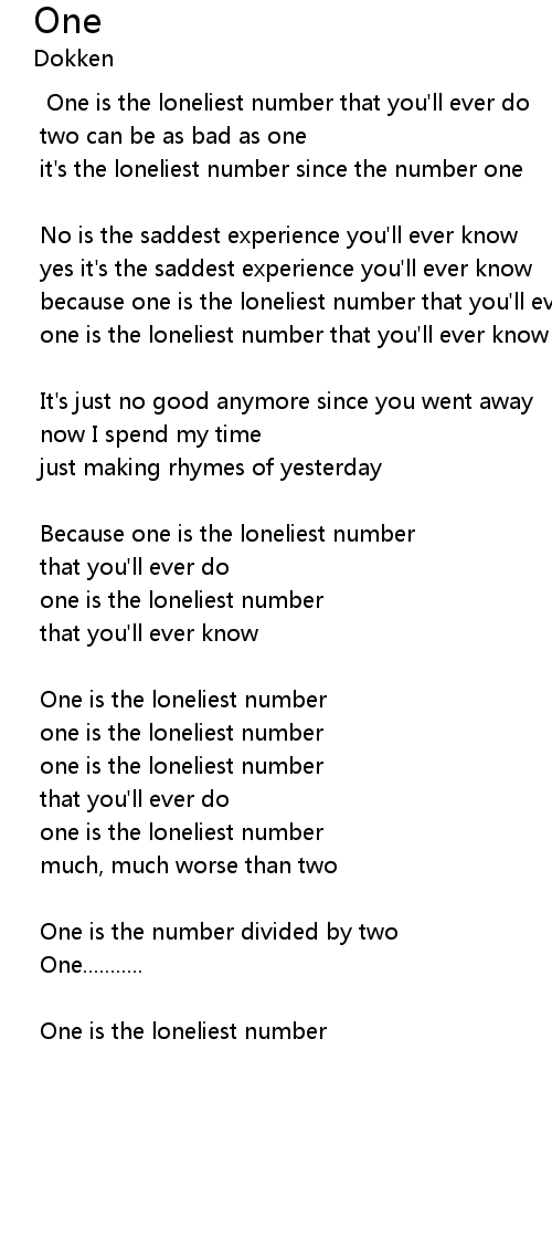 one is the loneliest number that you'll ever know |
