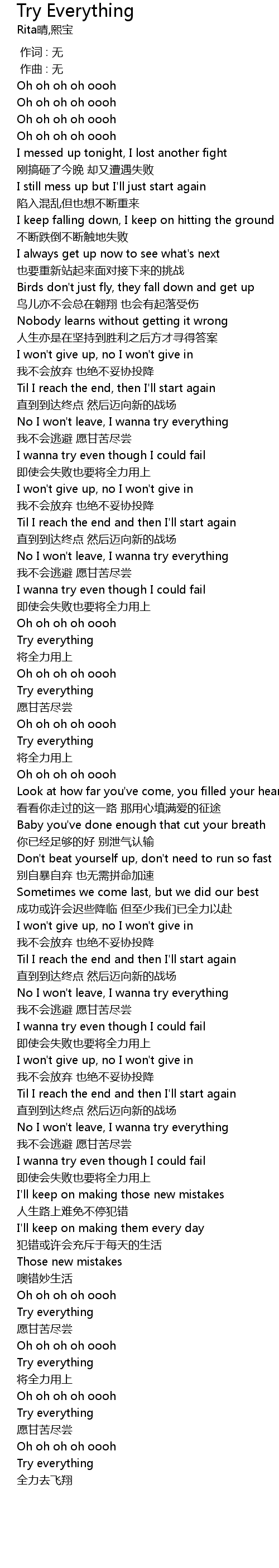 | [00:56.854] | No I won' t leave, I wanna try everything |