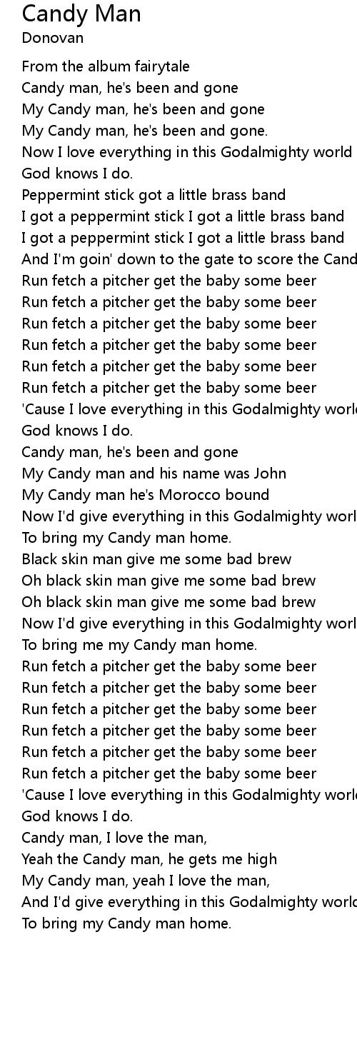 | And I'm goin' down to the gate to score the Candy man stand. | |