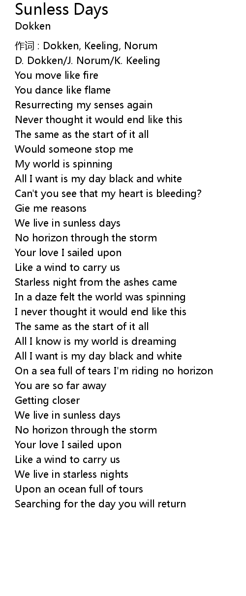 | 作词 : Dokken, Keeling, Norum | |