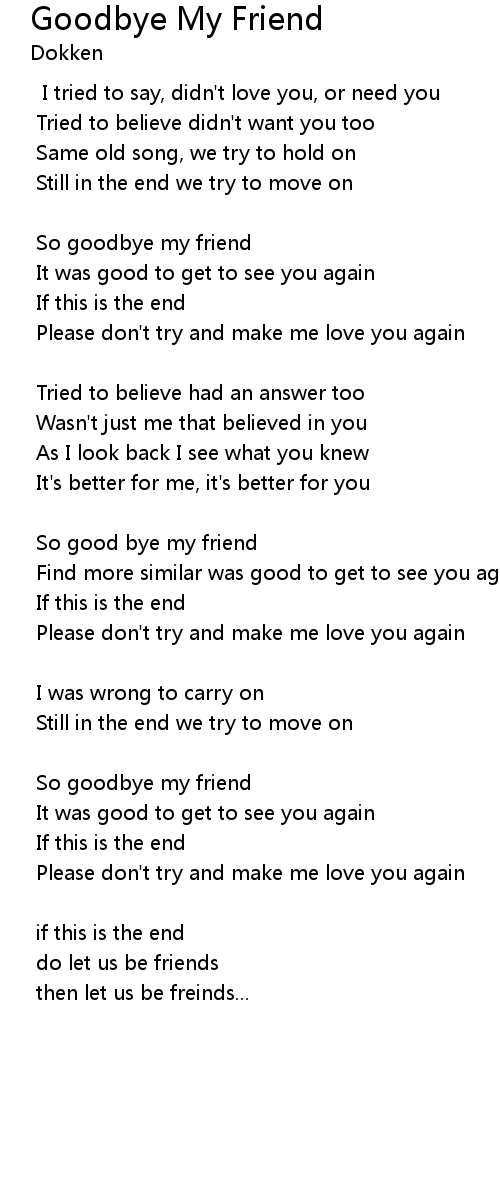 So goodbye my friend |