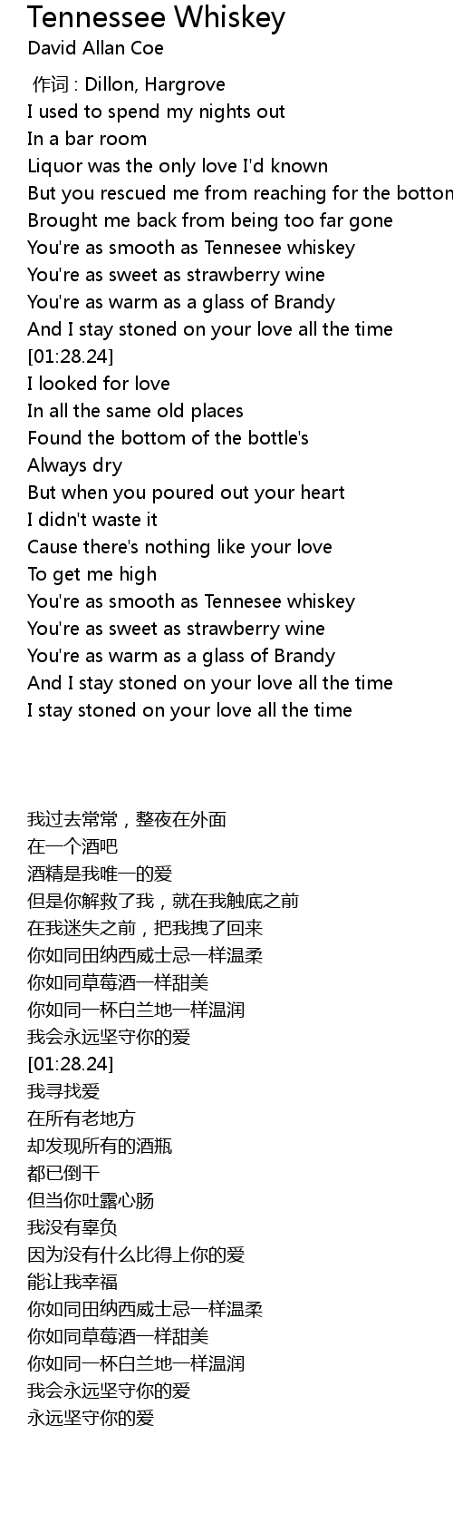 | [00:46.29] | You' re as smooth as Tennesee whiskey |