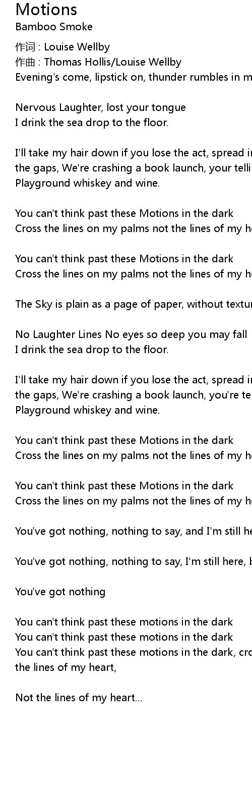 | You can' t think past these motions in the dark, cross the lines of my palms not the lines of my heart, | |