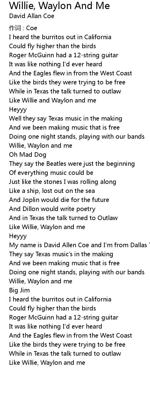 | My name is David Allen Coe and I' m from Dallas Texas | |
