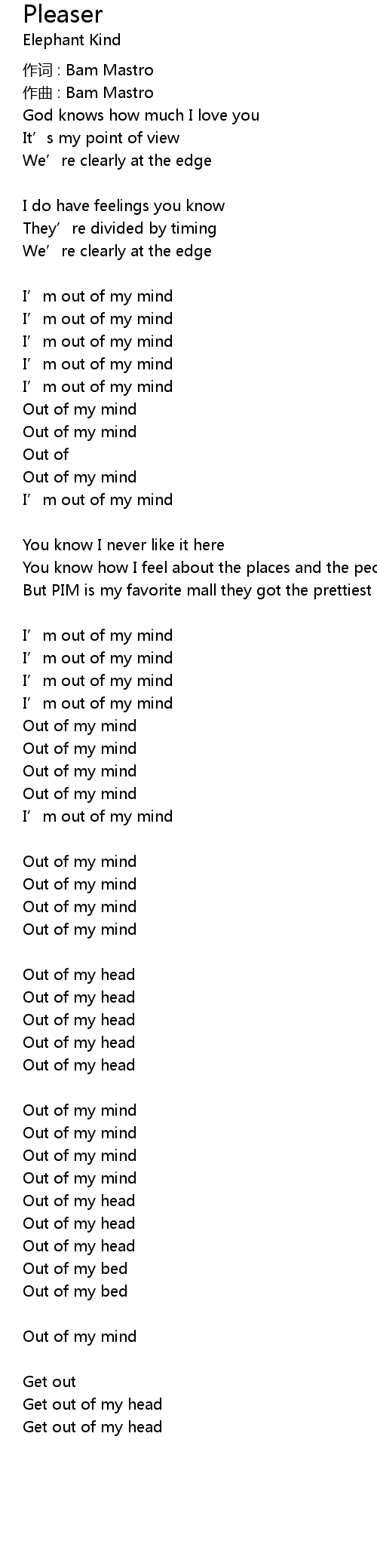| 作词 : Bam Mastro | |