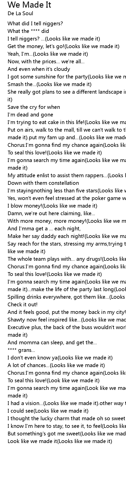 I tell niggers? ...(Looks like we made it) |