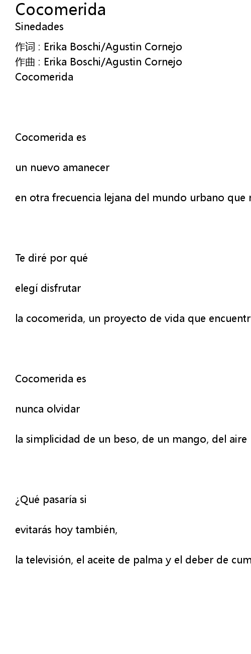 | 作词 : Erika Boschi/Agustin Cornejo | |