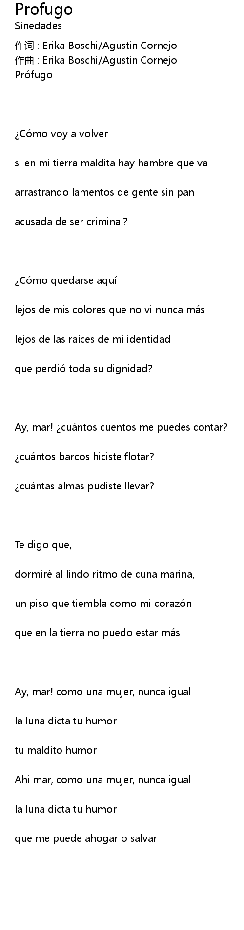 | 作词 : Erika Boschi/Agustin Cornejo | |