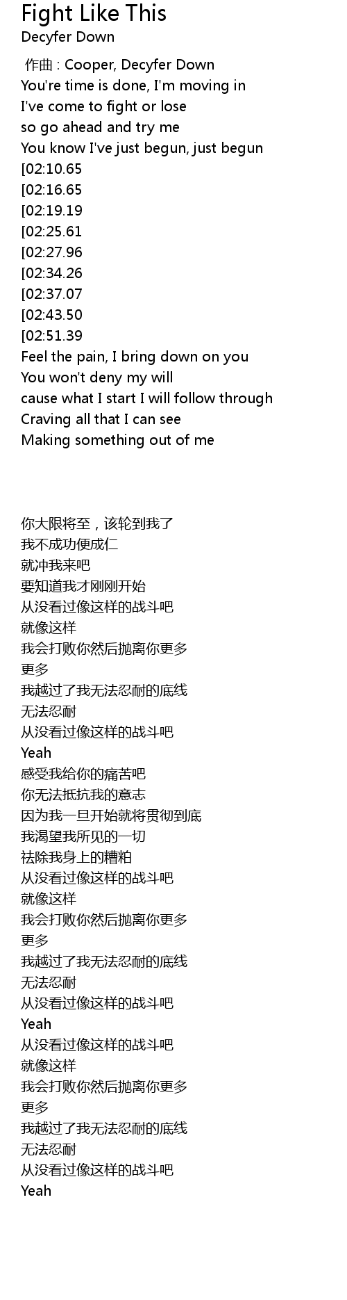 | [00:44.74] | I' ve come to fight or lose |