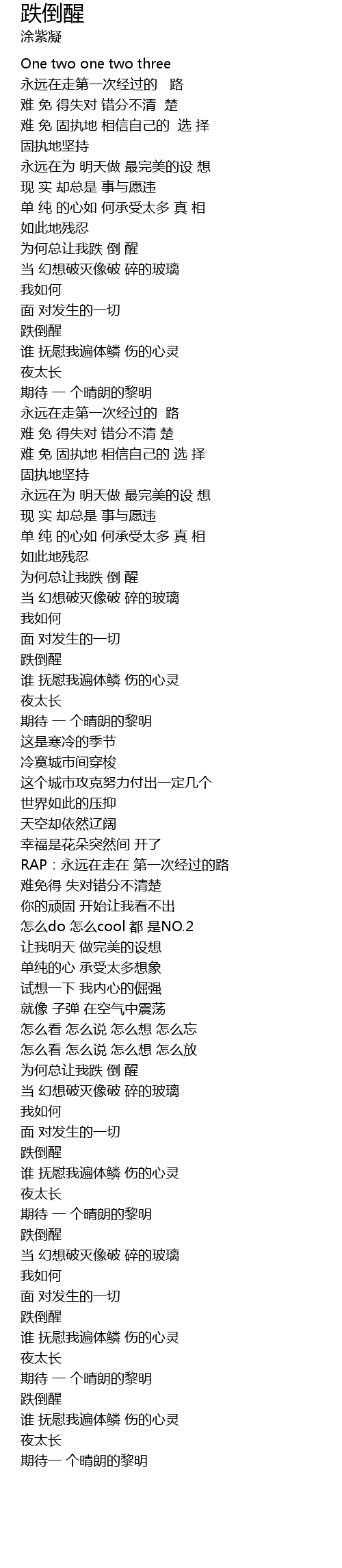 | [04:10.89] | 跌倒醒 |