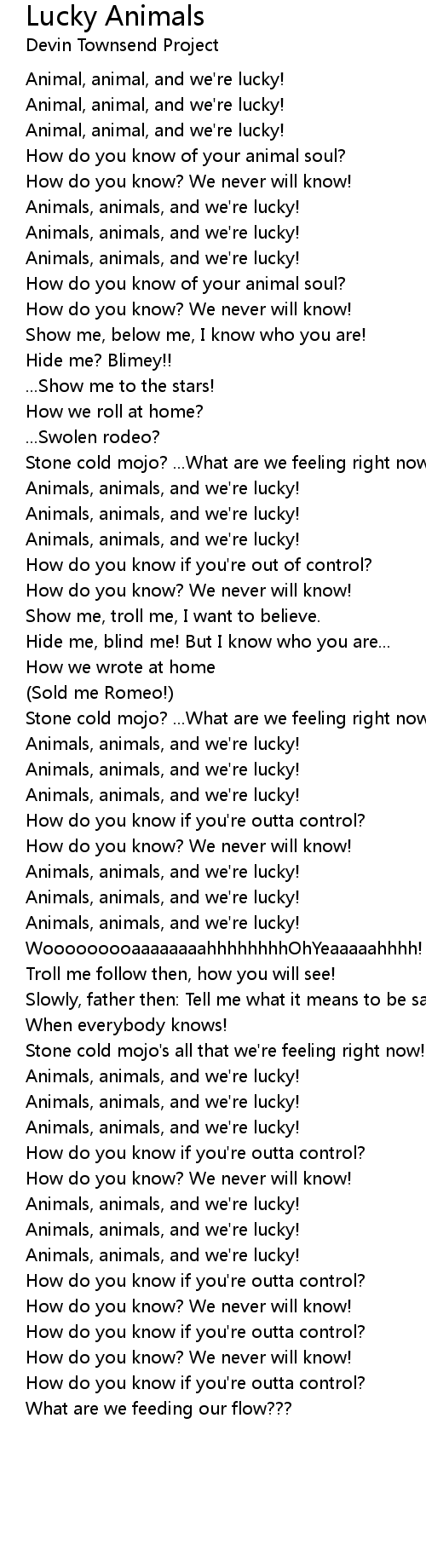 Animal, animal, and we're lucky! |