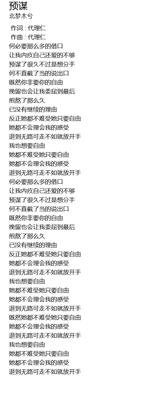 | [02:03.578] | 预谋了很久不过是想分手 |