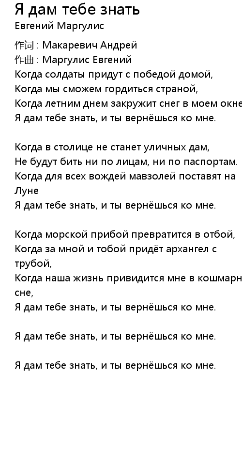 Я дам тебе знать, и ты веpнёшься ко мне.