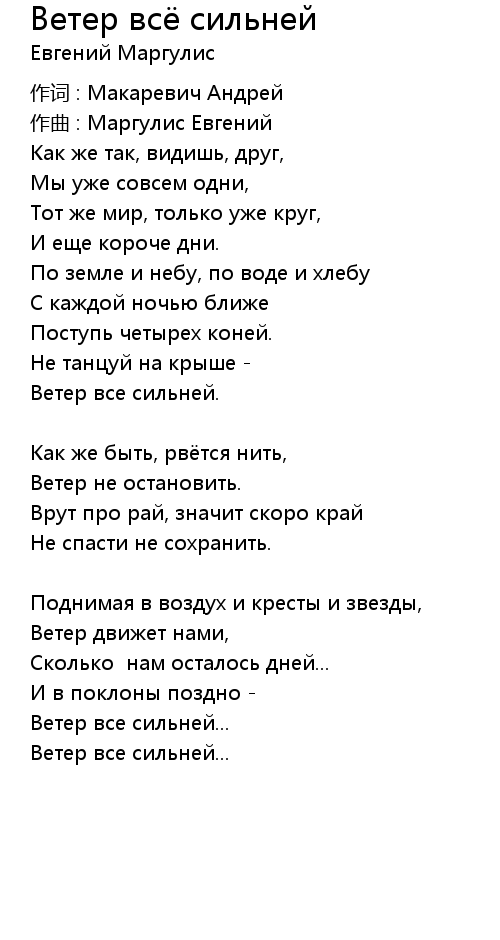 Ветер всё сильней 歌词