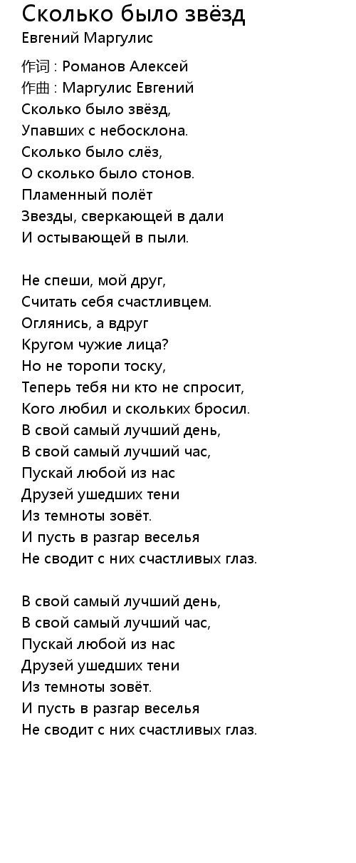 Сколько было звёзд 歌词