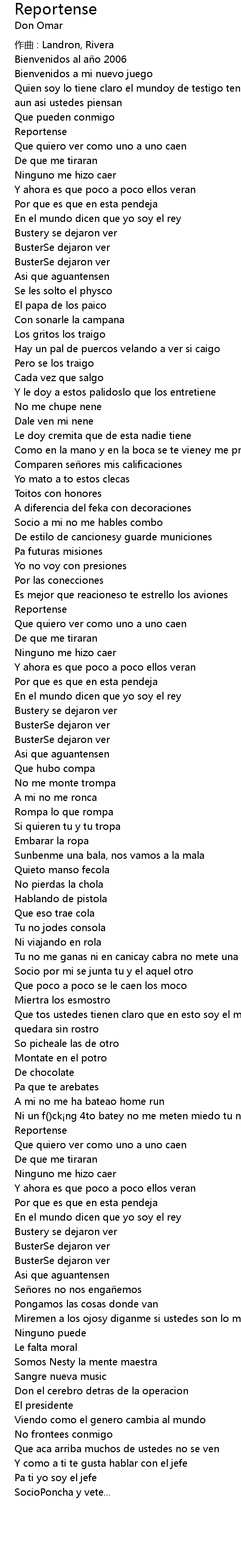 | Que tos ustedes tienen claro que en esto soy el mostroy si nos vamos calle se quedara sin rostro | |