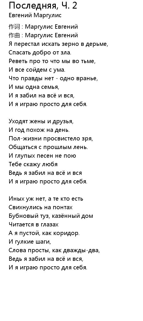 作词 : Маргулис Евгений |