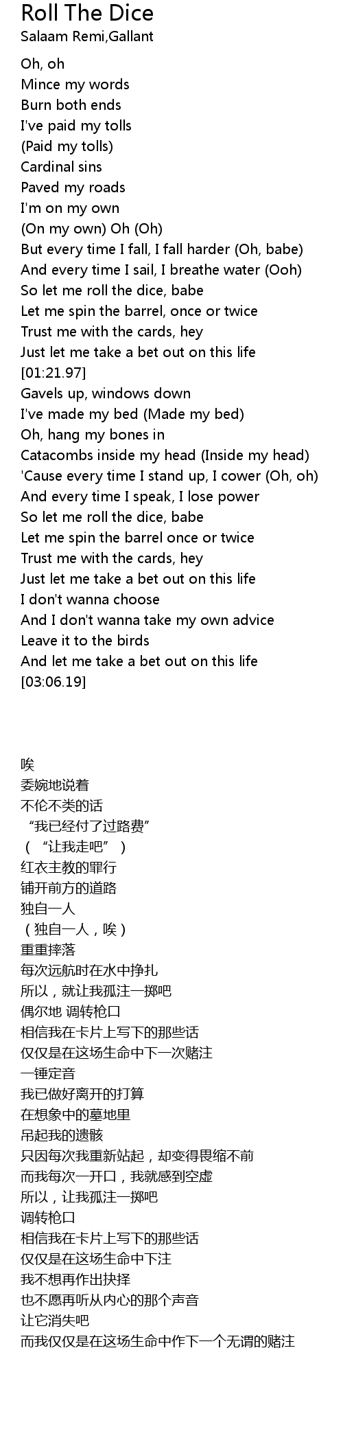 So let me roll the dice, babe |