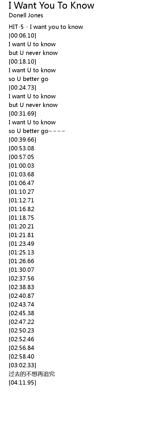 | [03:55.11][02:50.23][01:45.32] | I want U to know |