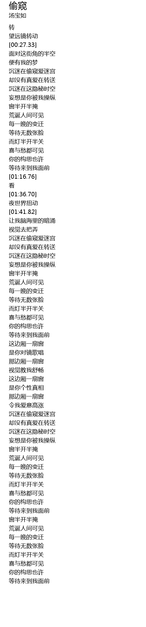 | [01:52.89] | 沉迷在偷窥爱迷宫 |