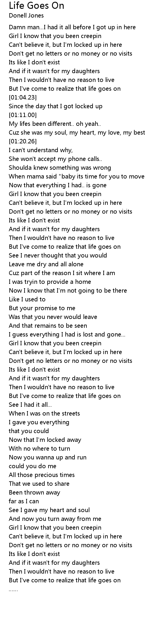 | [04:26.09] | But I' ve come to realize that life goes on |