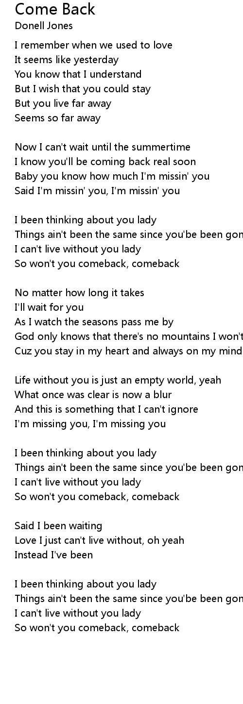 So won't you comeback, comeback
