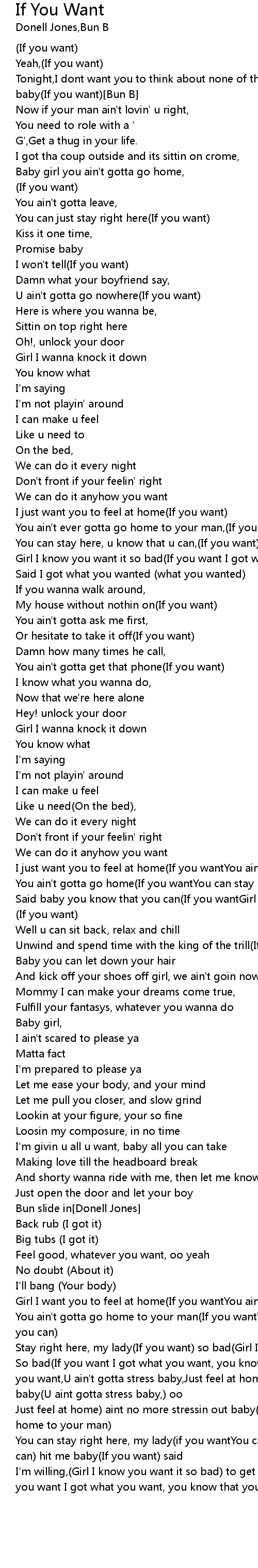Said baby you know that you can(If you wantGirl I know you want it so bad)(If you want I got what you want, you know what you want)[Bun B](If you want) |