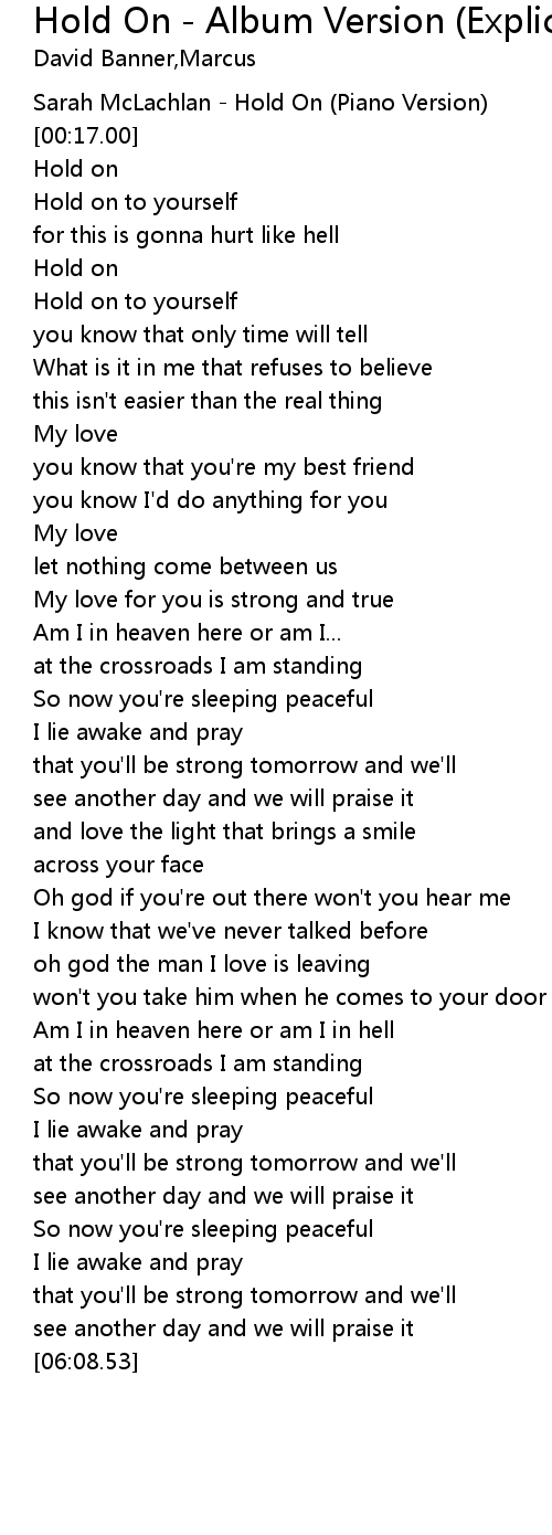 [00:02.00] Sarah McLachlan - Hold On (Piano Version)