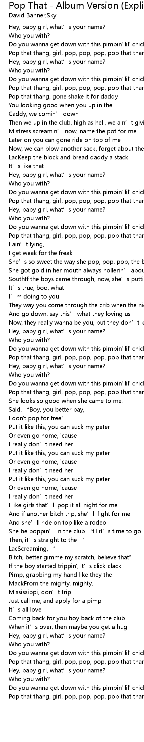 | Pop that thang, girl, pop, pop, pop, pop that thang, girl | |