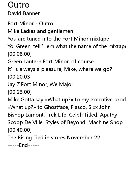 | [00:00.03] | Fort Minor - Outro |
