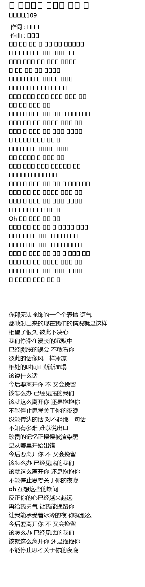 | [02:57.130] | 이대로 널 떠나야 할까 아니면 안아줄까 |