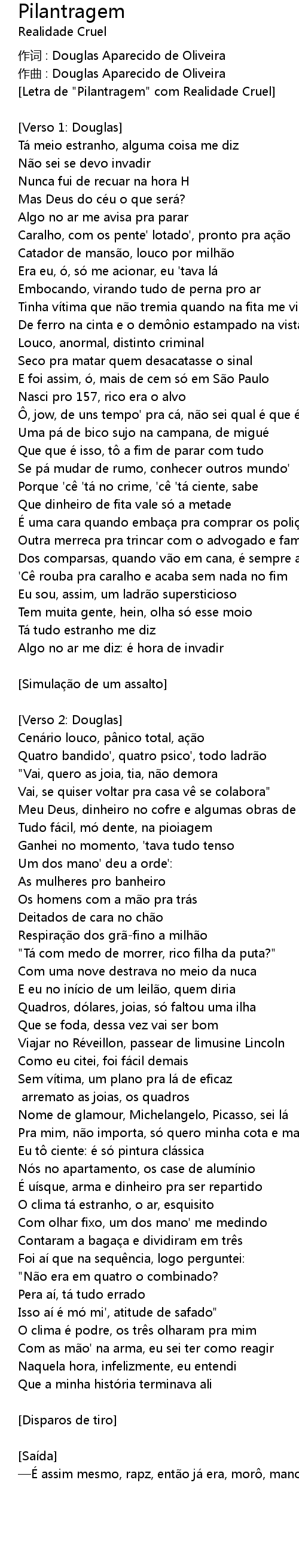 | [Letra de "Pilantragem" com Realidade Cruel] | |