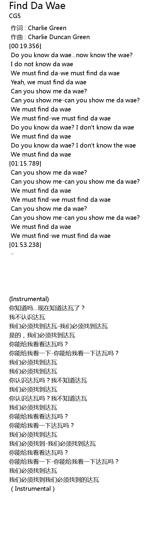 | [00:58.224] | Do you know da wae? I don' t know da wae |