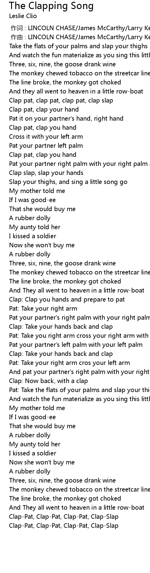 | 歌曲 | The Clapping Song |