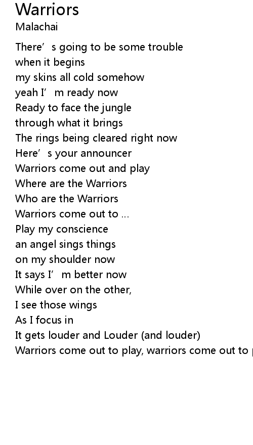 | Warriors come out to play, warriors come out to play |