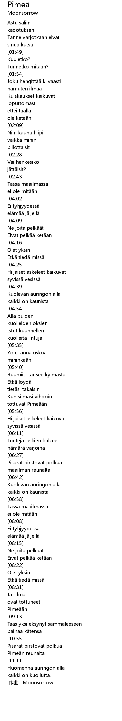 | [00:00.00] | zuò qǔ : Moonsorrow |