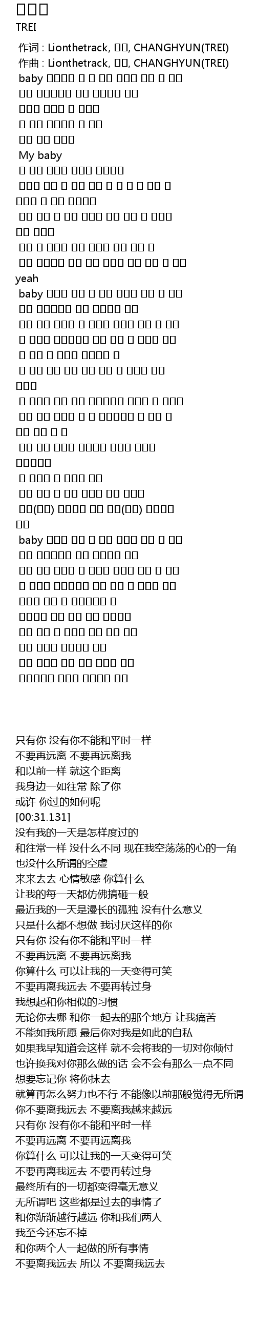 | [00:03.492] | baby 너여야만 해 너 없인 평소와 같을 순 없어 |