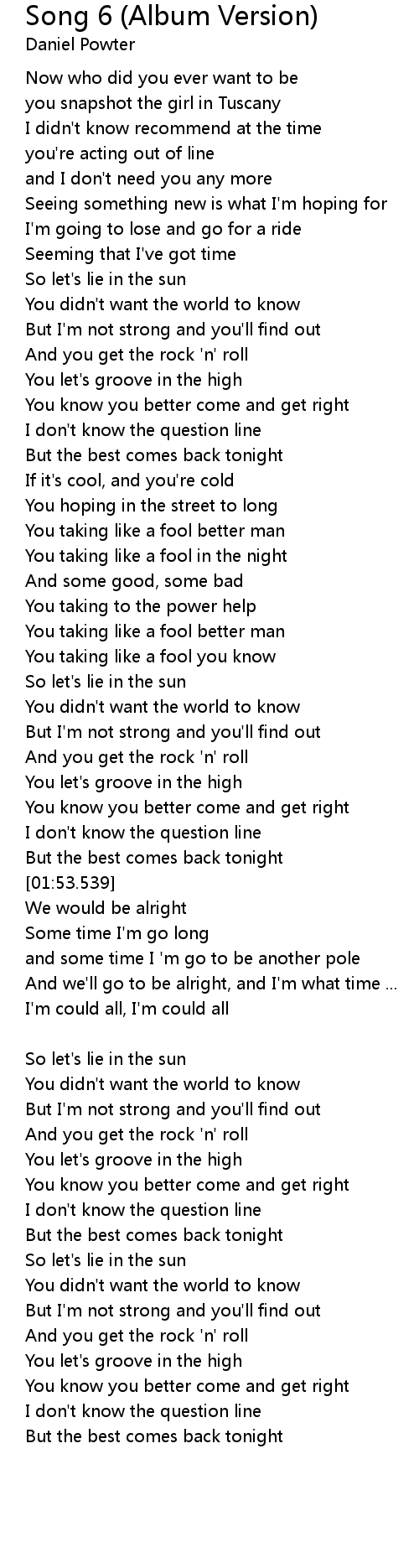 | [00:49.169] | But I'm not strong and you'll find out |