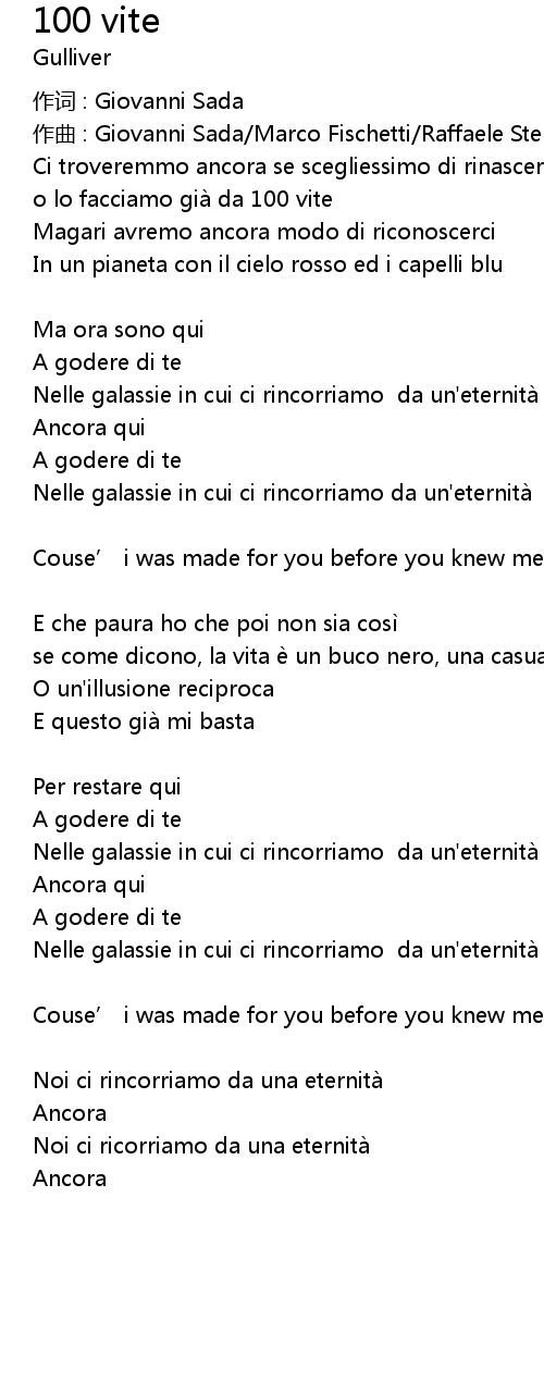 | Nelle galassie in cui ci rincorriamo da un' eternità | |