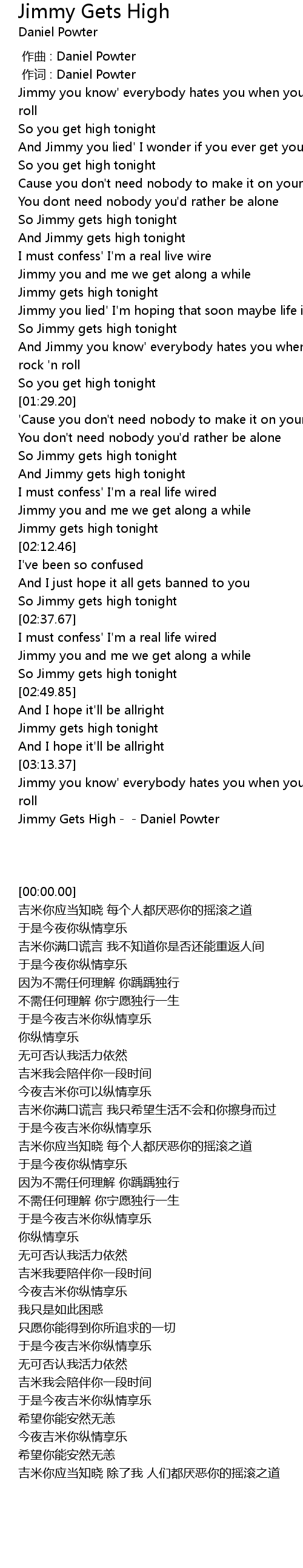 | [03:28.22] | Jimmy Gets High Daniel Powter |
